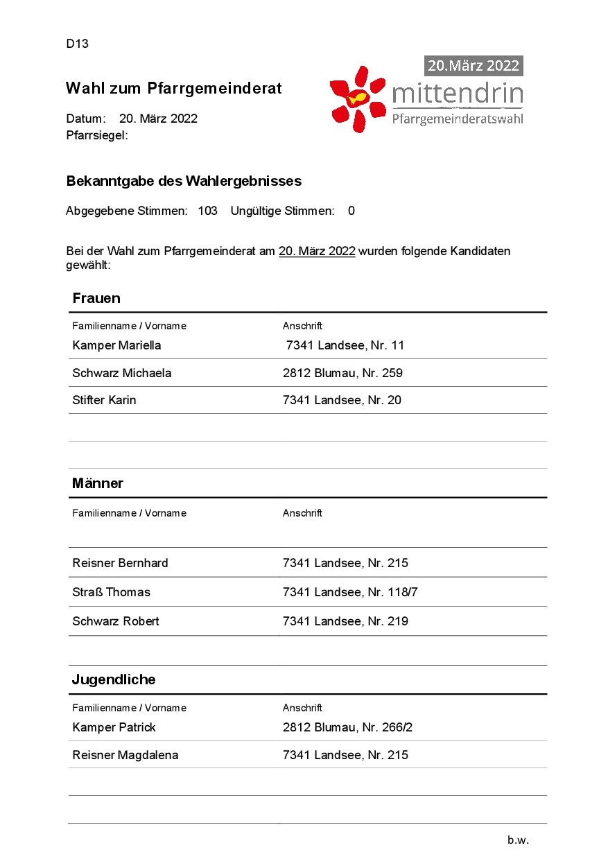 Wir möchten uns für Ihre Stimmabgabe bedanken und dürfen hiermit über das Wahlergebnis informieren: