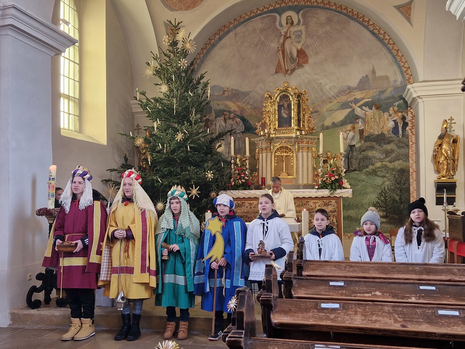 Die Ministranten setzten auch heuer wieder ein Zeichen - für eine gerechte Welt. Bei angenehmen Temperaturen besuchten sie die Häuser in Landsee und Blumau um Spenden für die Dreikönigsaktion zu sammeln.