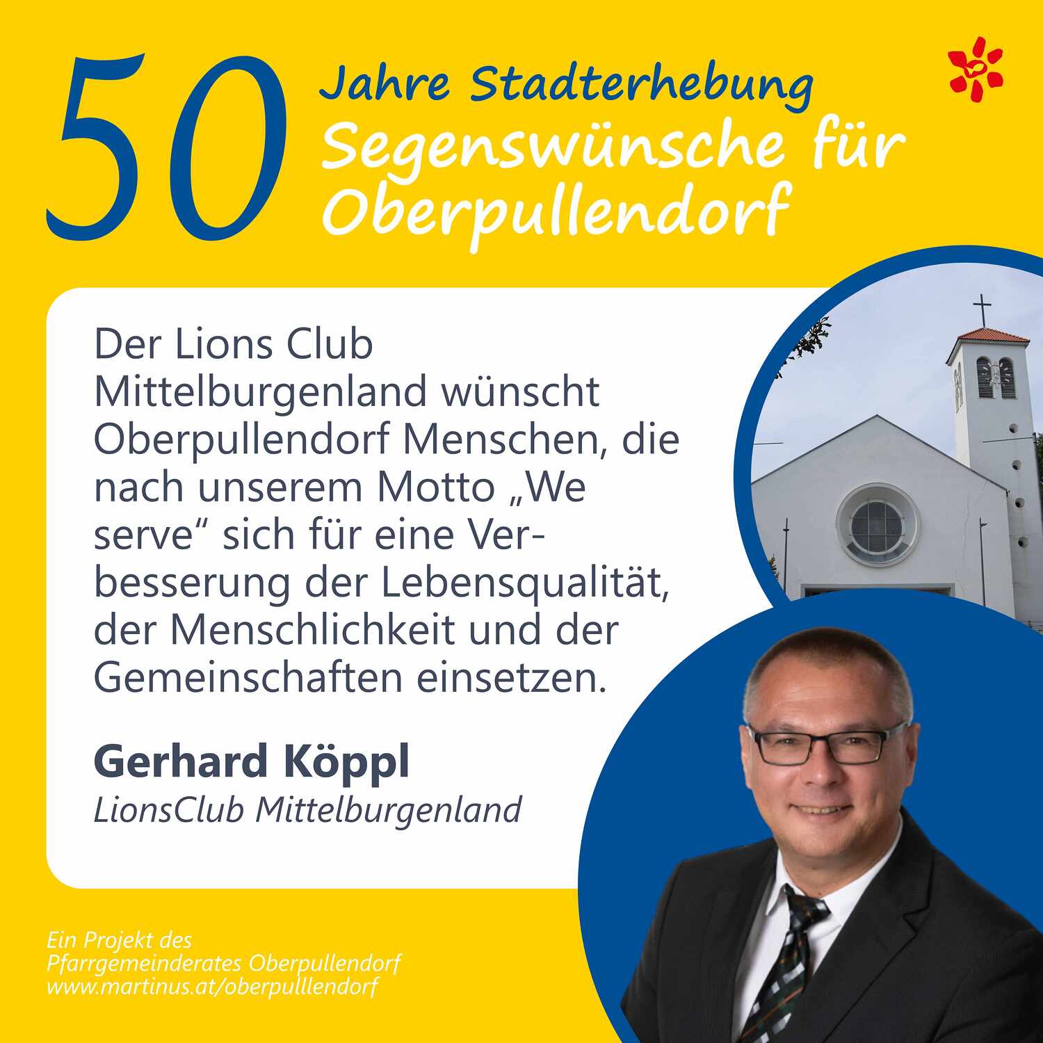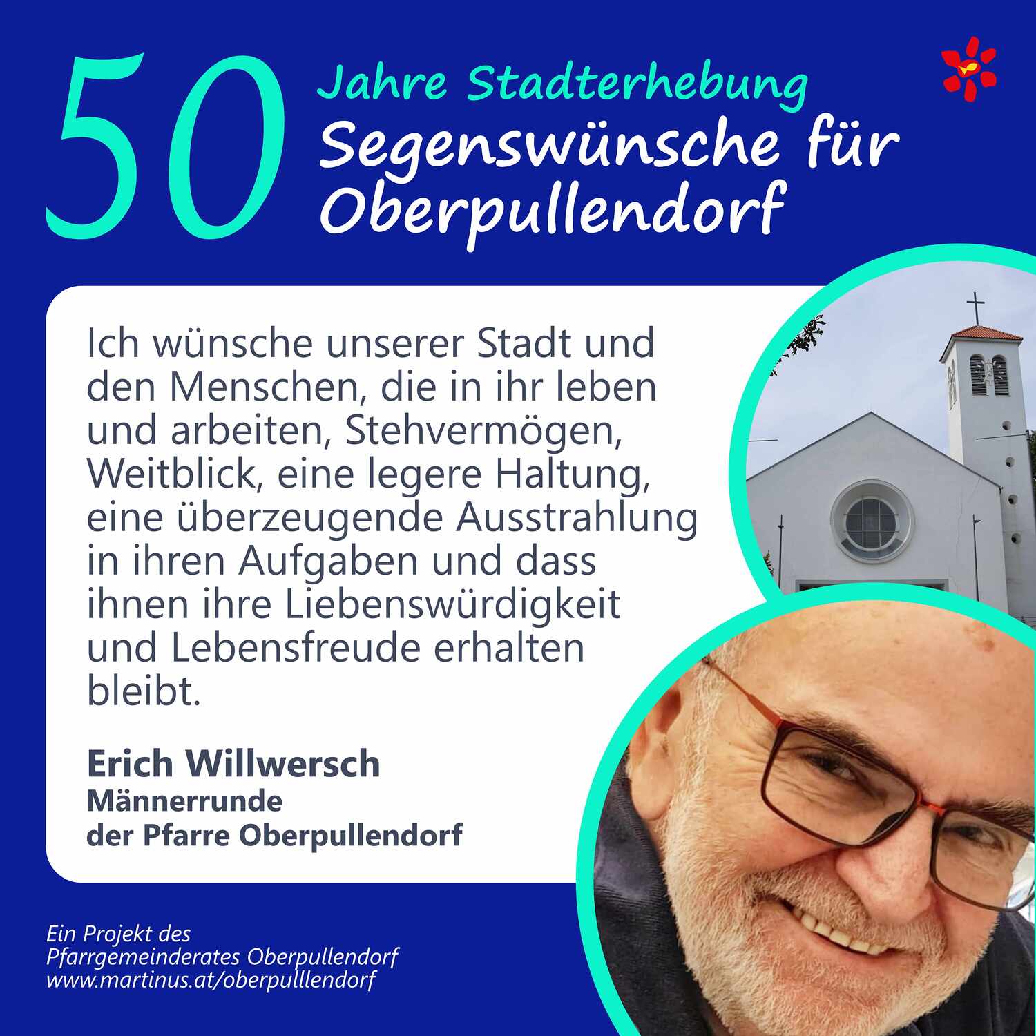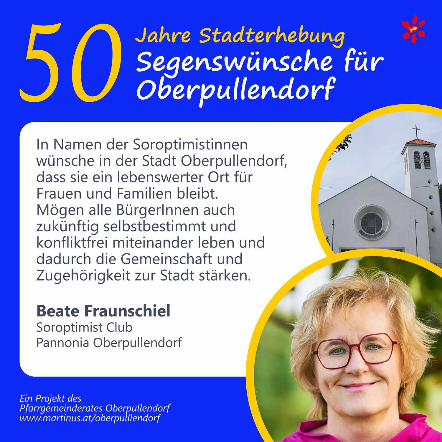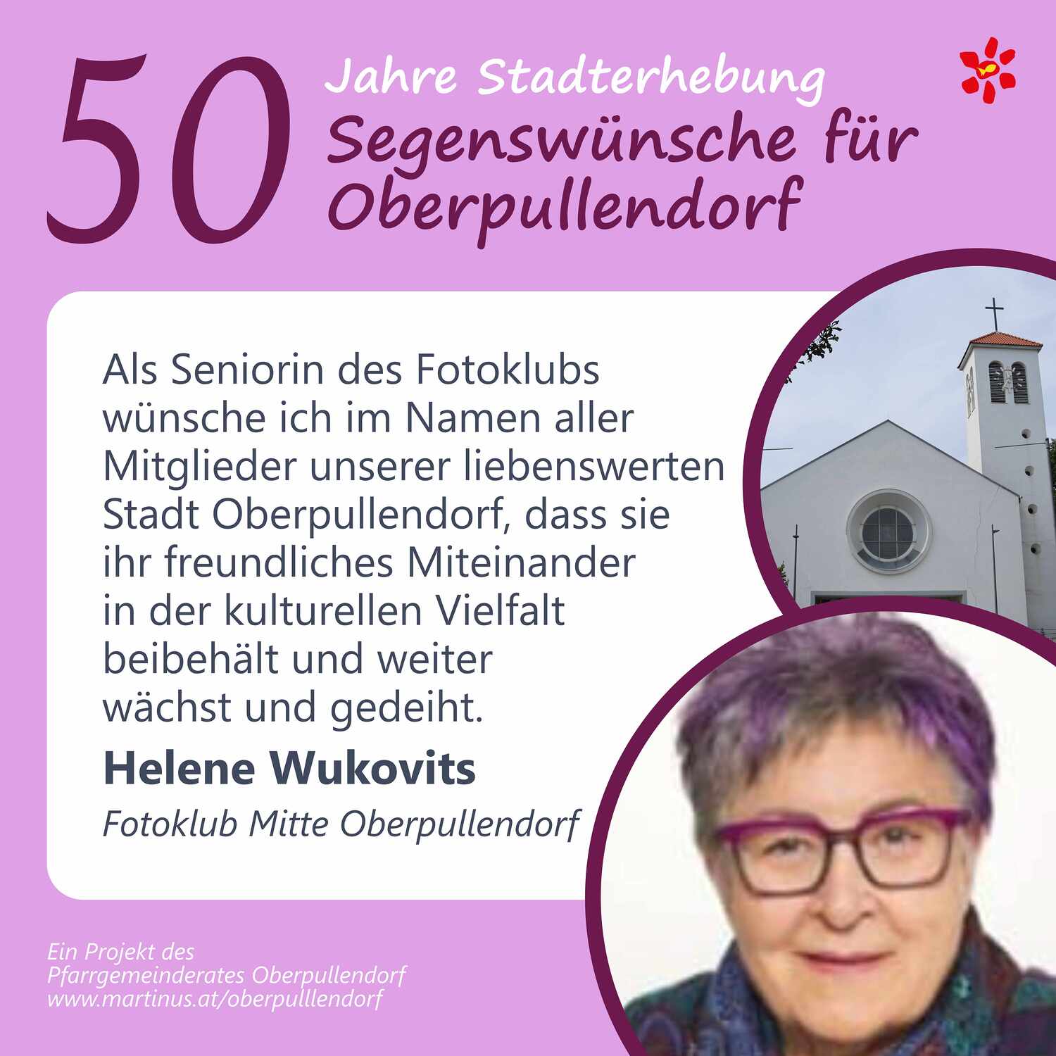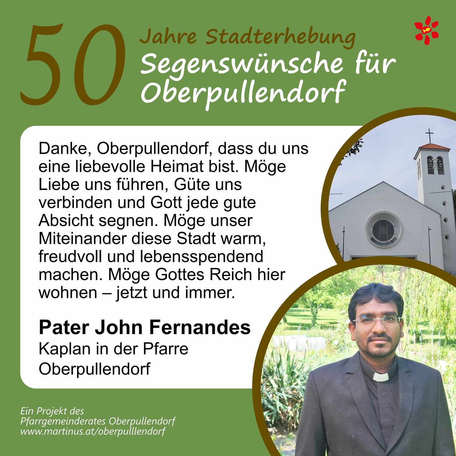 Im Jahr 2025 feierte Oberpullendorf 800 Jahre erstmalige Nennung und 50 Jahre Stadterhebung. Zu diesem Jubiläum hat die Pfarre Oberpullendorf die schöne Tradition aufgegriffen, dass zu Jubiläen dem Jubilar gute Wünsche übermittelt werden.
