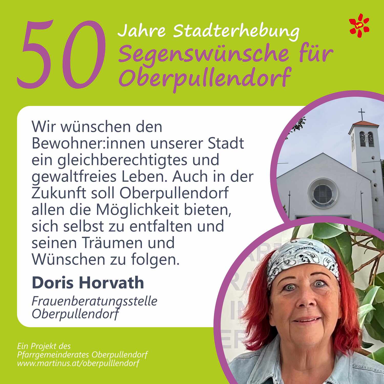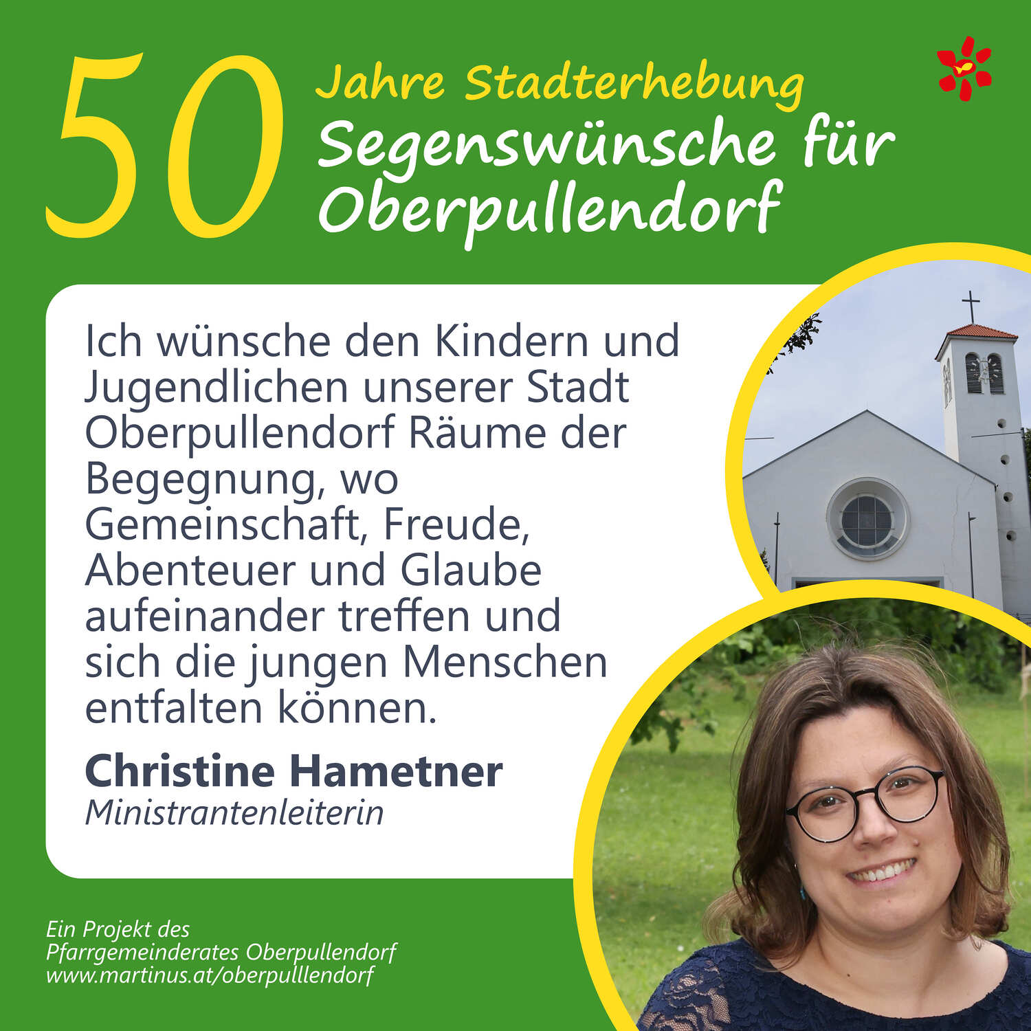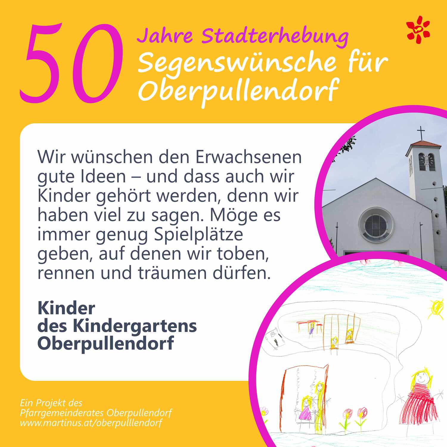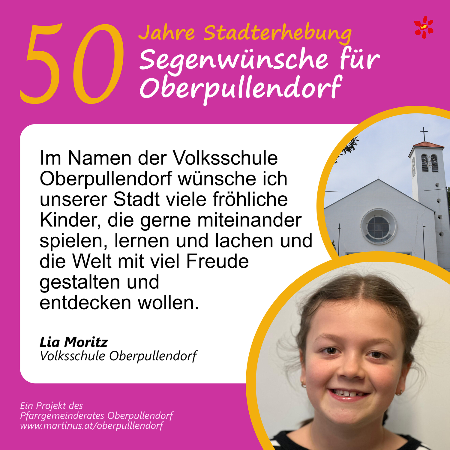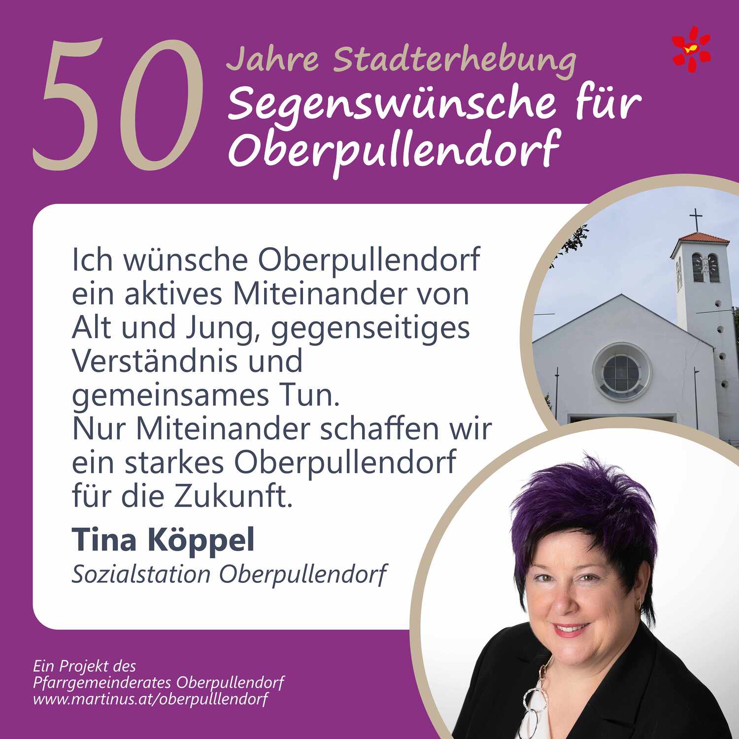 Im Jahr 2025 feierte Oberpullendorf 800 Jahre erstmalige Nennung und 50 Jahre Stadterhebung. Zu diesem Jubiläum hat die Pfarre Oberpullendorf die schöne Tradition aufgegriffen, dass zu Jubiläen dem Jubilar gute Wünsche übermittelt werden.