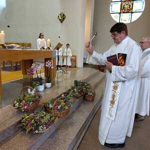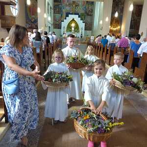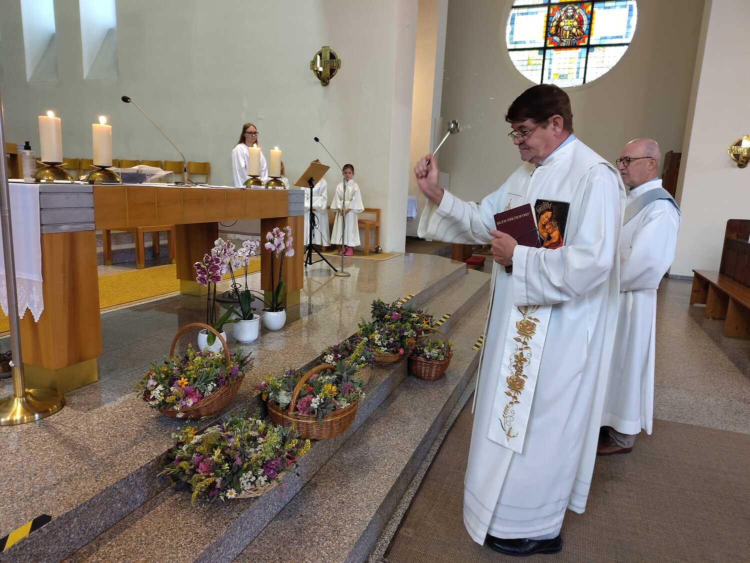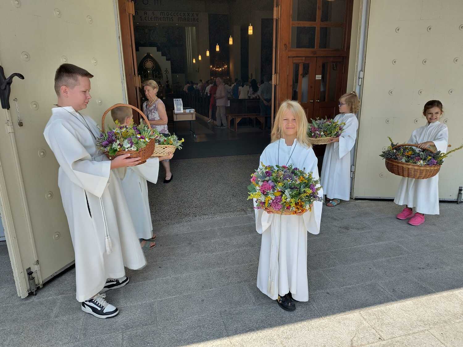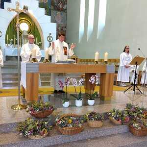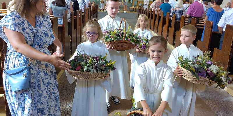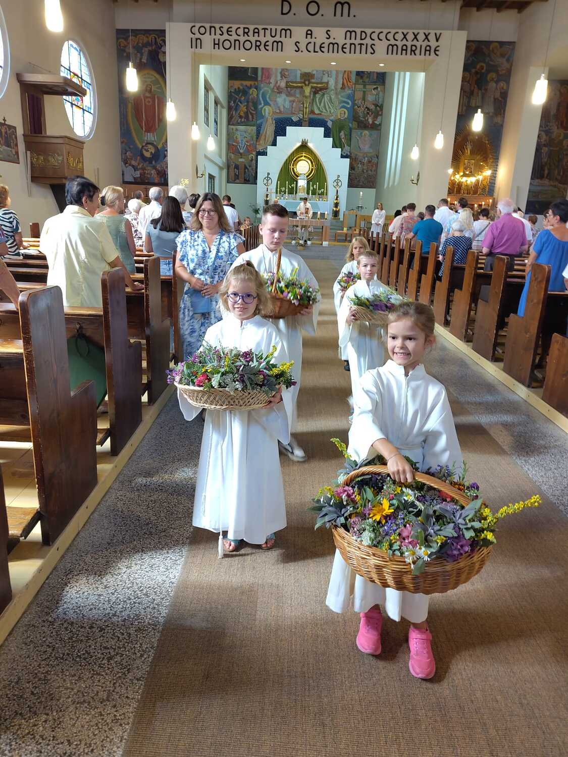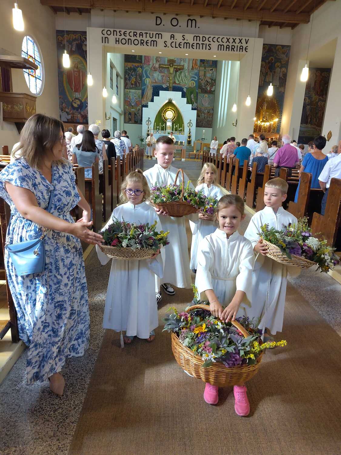 Das Fest "Maria Himmelfahrt" erinnert an die Schönheit und den Reichtum im Leben der Mutter Gottes. Deshalb segnete Pfarrer Ghinari Kräuter- und Blumensträußchen, die von den Ministrant:innen verteilt wurden. Die Gläubigen nahmen sie sehr gern als Zeichen des Heiles und der Freude mit nach Hause.