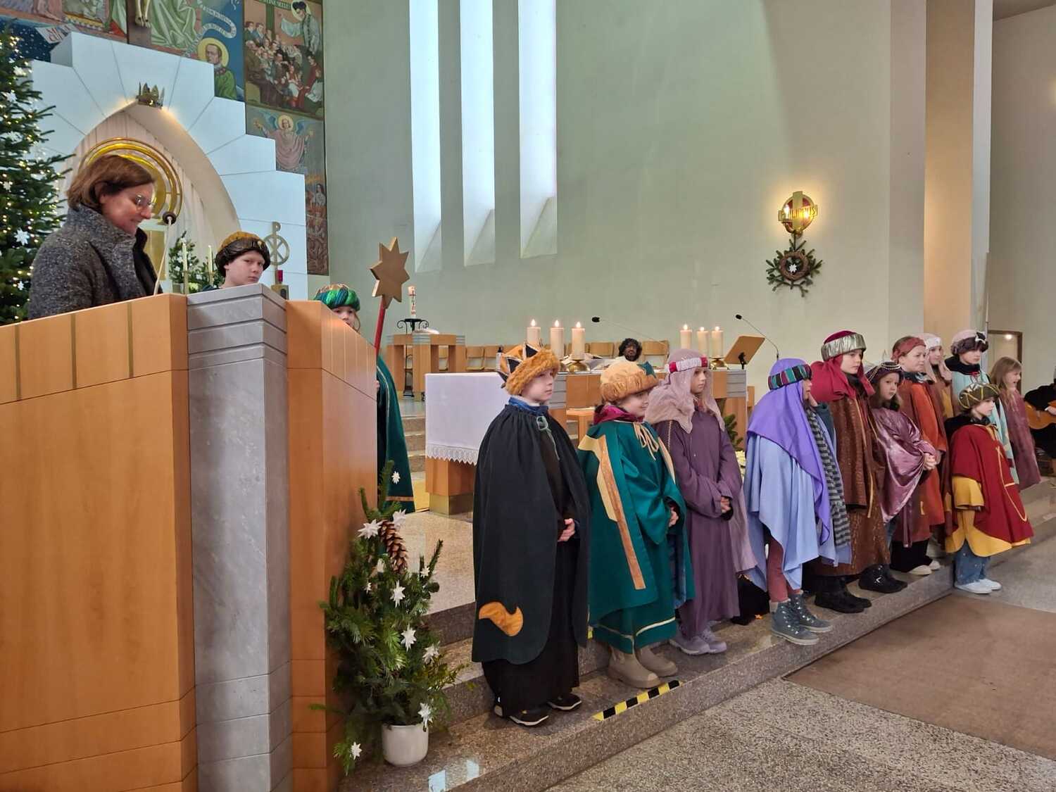 Am Fest der Heiligen drei Könige haben die Sternsinger die Familienmesse in der Pfarrkirche mit ihren Gebeten, Texten und Liedern mitgestaltet. Zum Abschluss der Aktion freuen sich alle Beteiligten auf einen Kinobesuch und das gemeinsam Pizzaessen.
