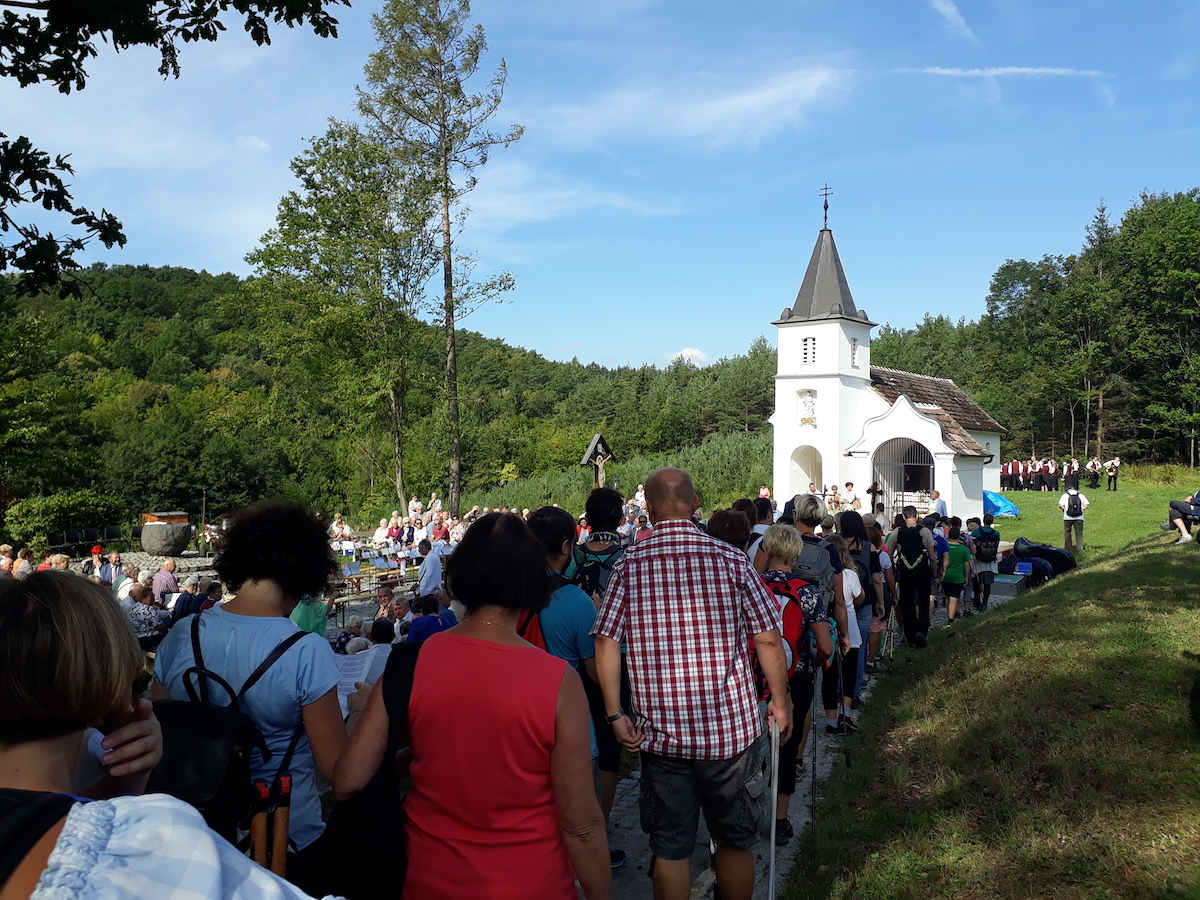 Gläubige aus allen Ortsteilen des Pfarrverbandes Draßmarkt – Kaisersdorf/Weingraben – Oberrabnitz/Karl machten sich am Hochfest Mariä Aufnahme in den Himmel jeweils von ihren Pfarrkirchen aus auf den Weg in Richtung Dörfl zur Bründlkapelle. Auf halbem Weg trafen sich die einzelnen Gruppen im Wald zur Andacht. Schließlich zogen 66 Pilger gemeinsam in die Kapelle Maria Bründl ein und feierten mit zahlreichen weiteren Wallfahrern den Festgottesdienst.