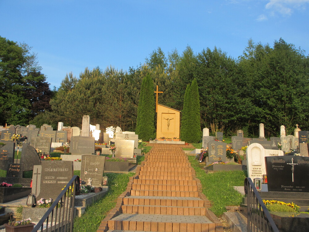 Das gemauerte Friedhofskreuz in Grafenschachen wurde von den Gemeindearbeitern Gerhard Pratl und Josef Zankl zwischen 1995 und 1998 errichtet. Vorher stand an dem Platz ein Holzkreuz.