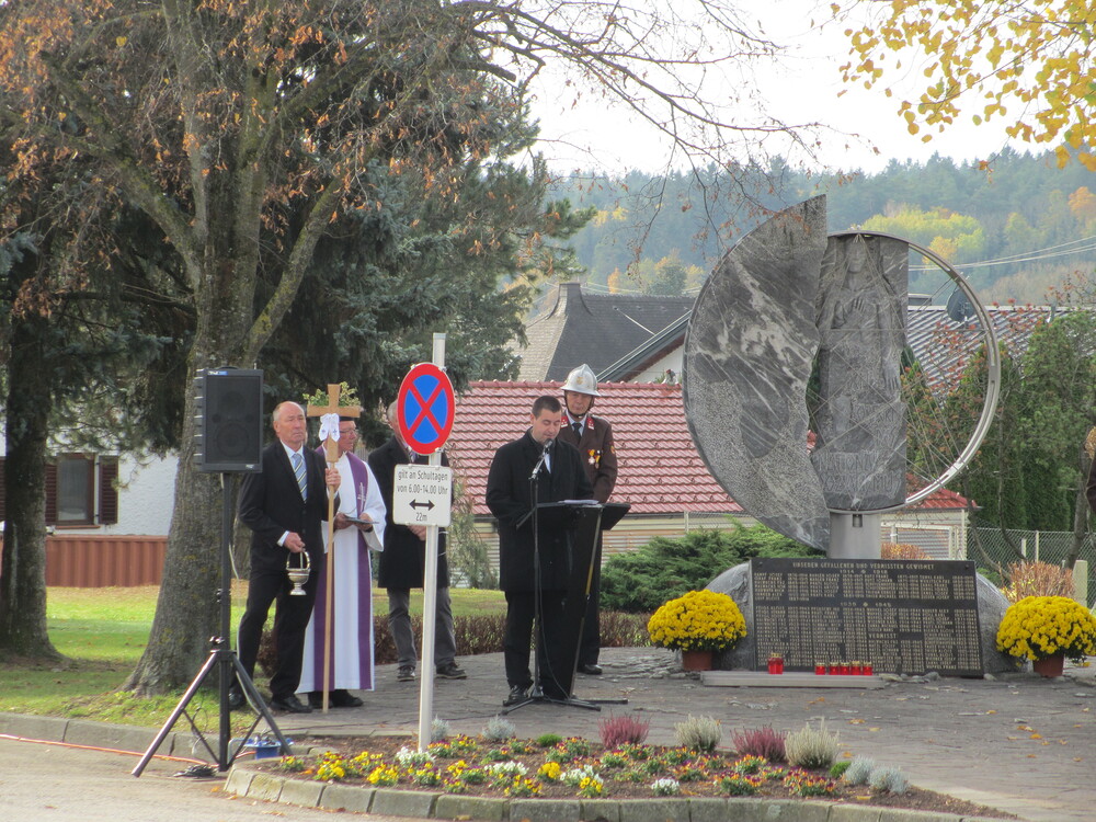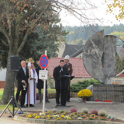 1995 wurde das alte Kriegerdenkmal abgetragen. Am 13. Oktober 1996 wurde eine Abstimmung über die Gestaltung abgehalten, wobei sich die Bevölkerung mehrheitlich für das „Model Fritz“ entschied, das von Manuela Fritz stammte. Im Dezember 1995 wurde die Bevölkerung auch hinsichtlich des Standortes befragt. 501 Stimmen entfielen dabei auf den Standort „Zentrum“ und 99 Stimmen bekam der Standort „Ortsfriedhof“. 1997 wurde das Friedensmahnmal in feierlichem Rahmen unter Anteilnahme der Bevölkerung und mit LH Karl Stix, LH-Stellvertreter Ing. Gerhard Jellasitz, dem Jägerbataillon 1 und der Militärmusik Burgenland eingeweiht.