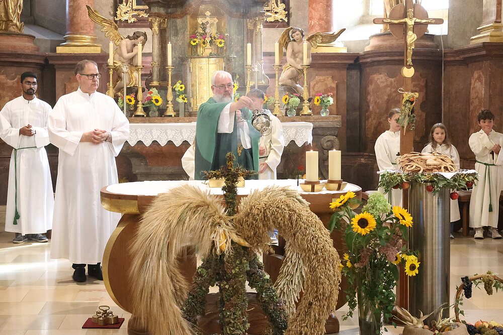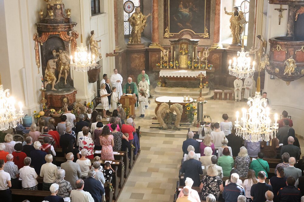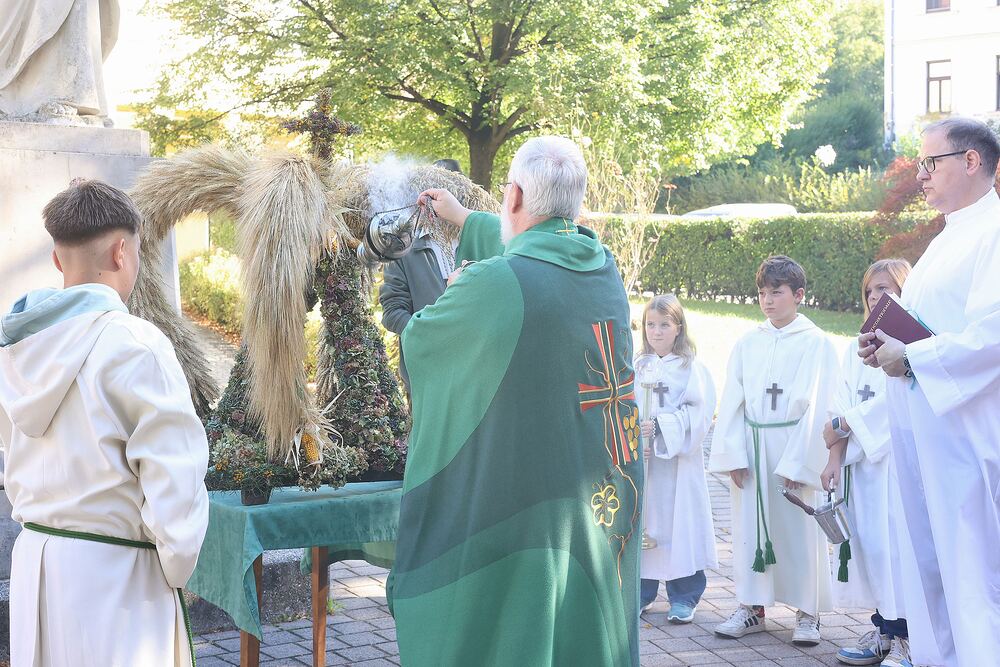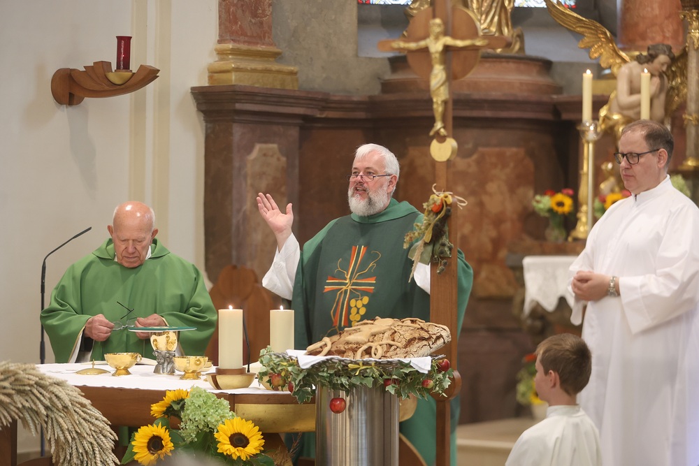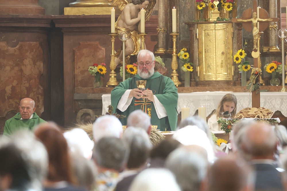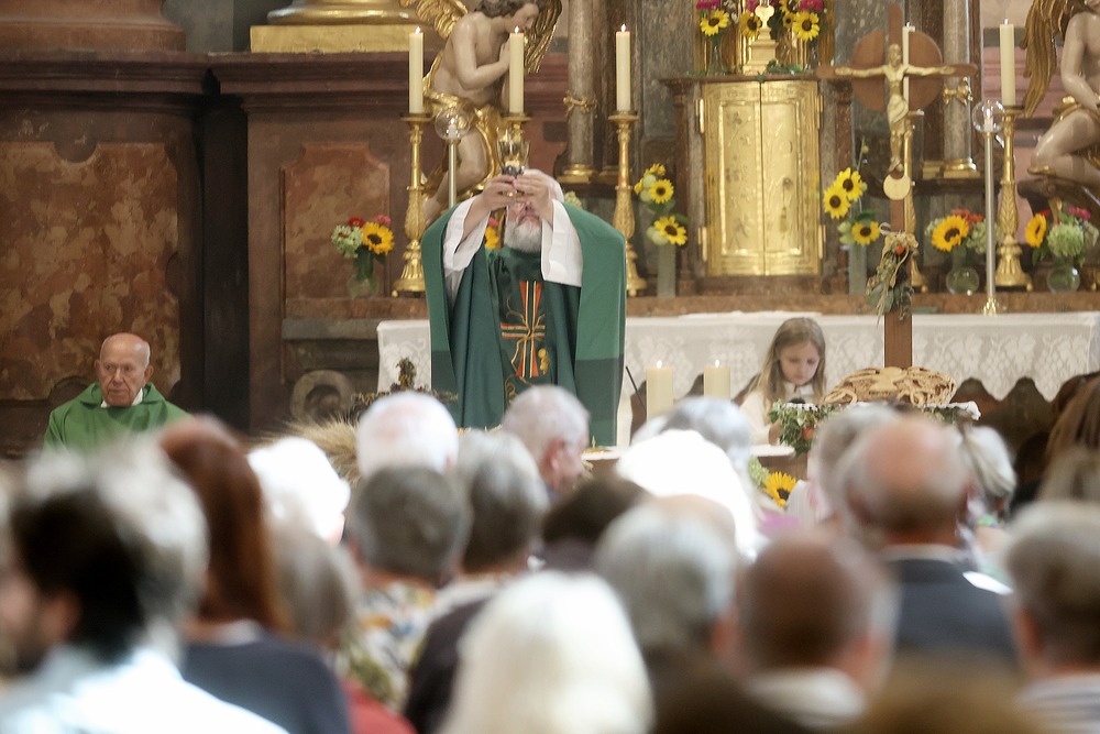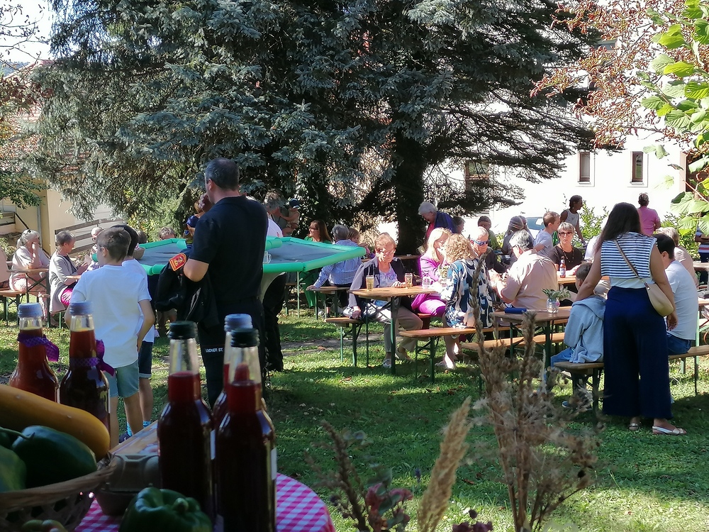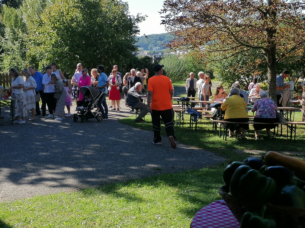 Wer am 21. September in die Kirche kam, war umgeben von herrlicher, liebevoller Dekoration aus Früchten, Blumen und Gemüse. Die Erntekrone war auch beeindruckend und so wurde bei der Erntedankmesse Gott aus ganzem Herzen für all die Fülle gedankt. Anschließend fand bei strahlendem Wetter ein gemütliches Beisammensein mit warmen Speisen, Getränken und Mehlspeisen statt. Die Kinder konnten Erntedankkränze und Sonnen basteln und das freie Spiel auf der Wiese genießen.