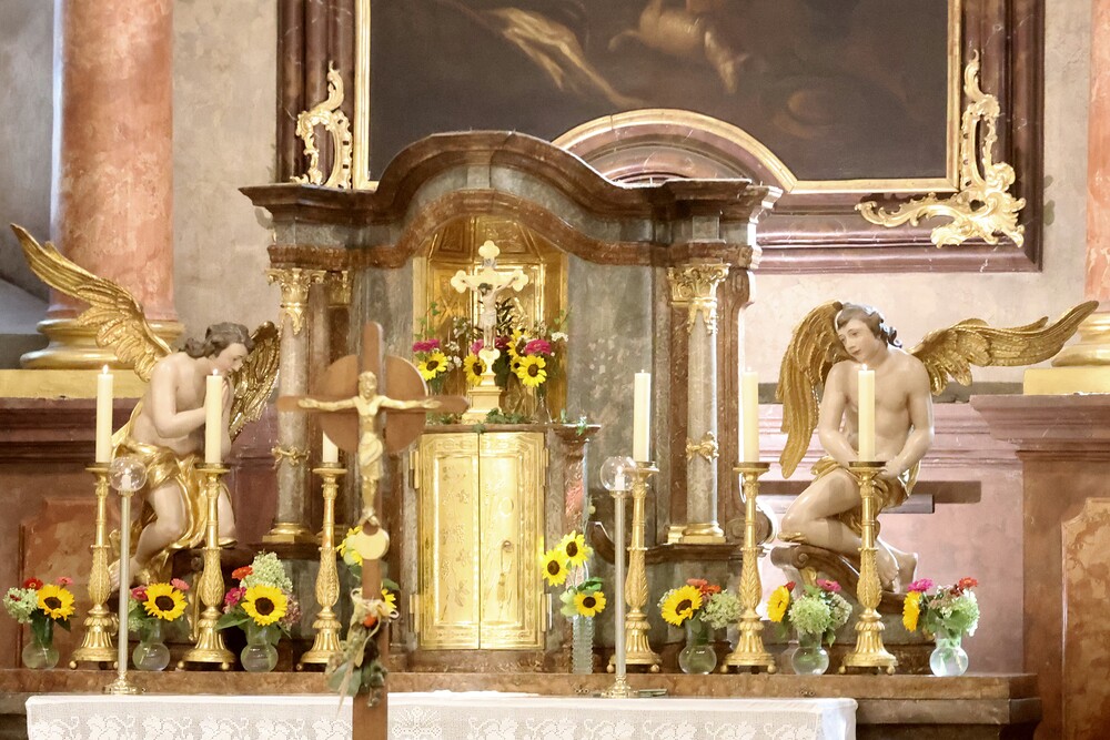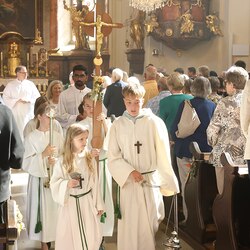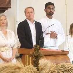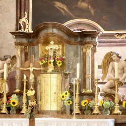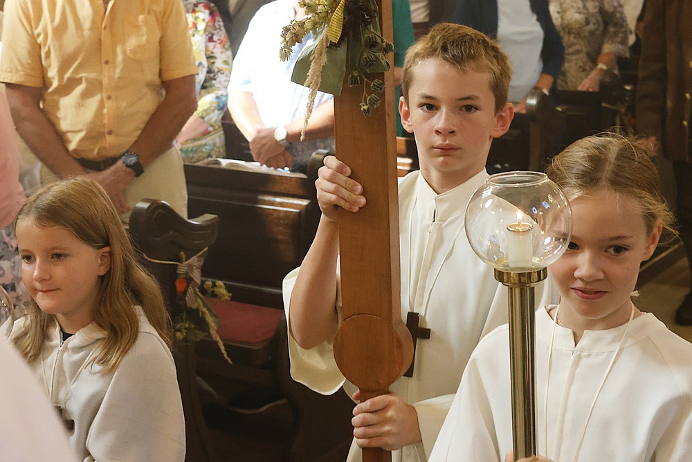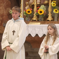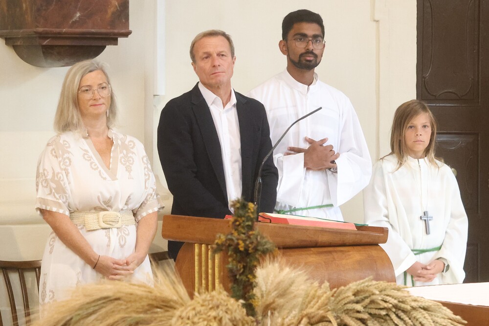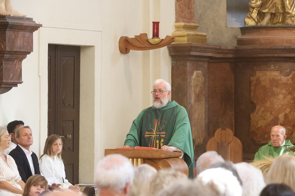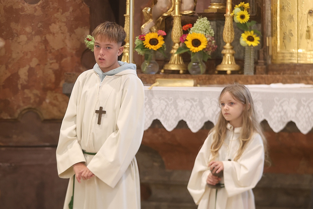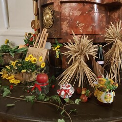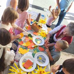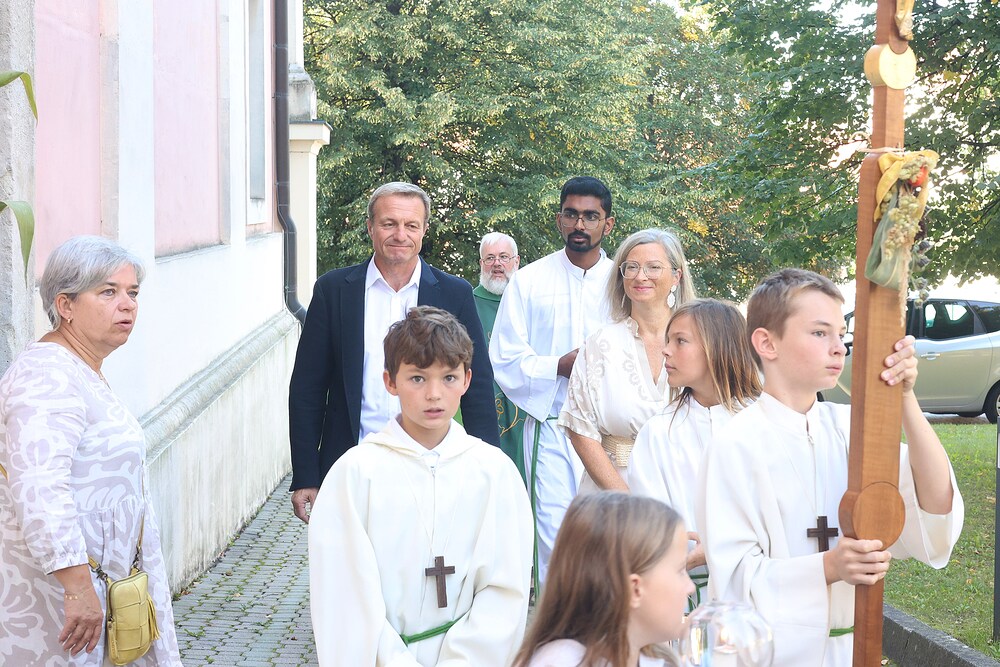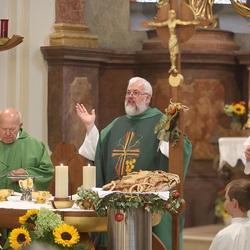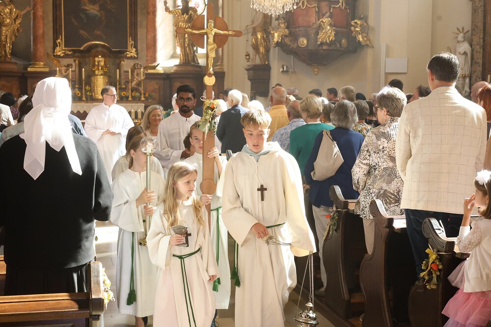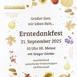 Wer am 21. September in die Kirche kam, war umgeben von herrlicher, liebevoller Dekoration aus Früchten, Blumen und Gemüse. Die Erntekrone war auch beeindruckend und so wurde bei der Erntedankmesse Gott aus ganzem Herzen für all die Fülle gedankt. Anschließend fand bei strahlendem Wetter ein gemütliches Beisammensein mit warmen Speisen, Getränken und Mehlspeisen statt. Die Kinder konnten Erntedankkränze und Sonnen basteln und das freie Spiel auf der Wiese genießen.