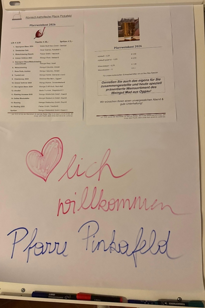 Bei der diesjährigen Pfarrweinkost wurde zunächst mit Begeisterung dem Männergesangsverein Eintracht aus Riedlingsdorf in Kooperation mit dem Männerchor aus Dechantskirchen gelauscht, danach führten Max featuring Chris weiter musikalisch mit vorwiegend Austropop durch den Abend. Unser Herr Pfarrer eröffnete & begrüsste unsere zahlreichen Gäste, erstmalig schänkte auch ein Weingut aus und präsentierte ein eigens für uns zusammengestelltes Weinsortiment. Leider war der gemütliche Abend viel zu schnell vorbei, nicht zuletzt deshalb, da unsere Weinbauern aus Oggau auch noch einen weiten Heimweg hatten. Wir bedanken uns für die netten Begegnungen.