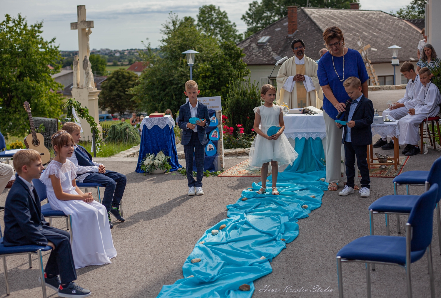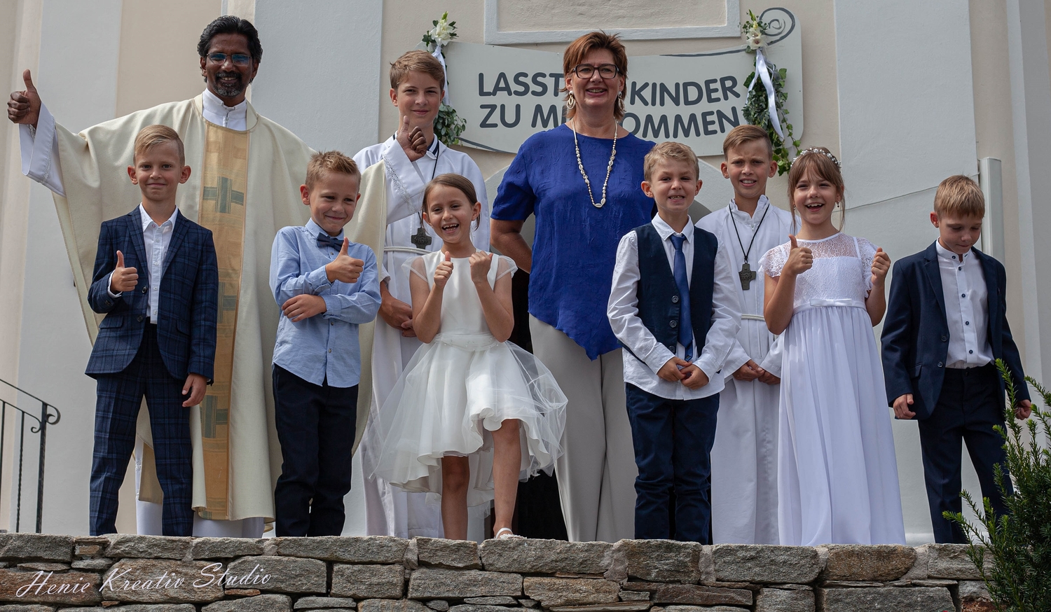 Wir wünschen den Erstkommunionkindern, dass sie spüren, dass Jesus immer für uns da ist: in unserer Gemeinschaft und in den heiligen Zeichen von Brot und Wein.