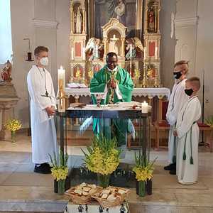 Nach der Hl. Messe gab es kurz Zeit, das gesegnete Brot miteinander zu teilen und zu essen , die Messbesucher persönlich zu begrüßen und mit einigen auch Erinnerungen aufzufrischen und auszutauschen.