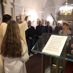 Mit diesem Eingangslied begann der Gottesdienst. Der Text des Theologen Dietrich Bonhoeffer setzt sich mit Gedanken auseinander, die zurück- und auf den Lebensweg davor blicken.