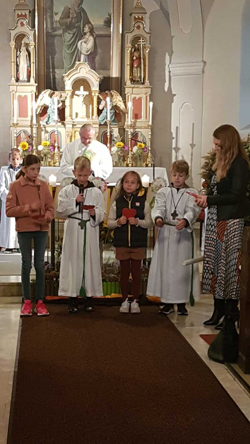 Das heurige Erntedankfest fand unter Mitwirkung vieler Kinder statt. Unsere - von einigen fleißigen und kreativen Frauen geflochtene Erntedankkrone - wurde von den jugendlichen Pfarrgemeinderätinnen feierlich in die Kirche getragen und von Diakon Gustav gesegnet.