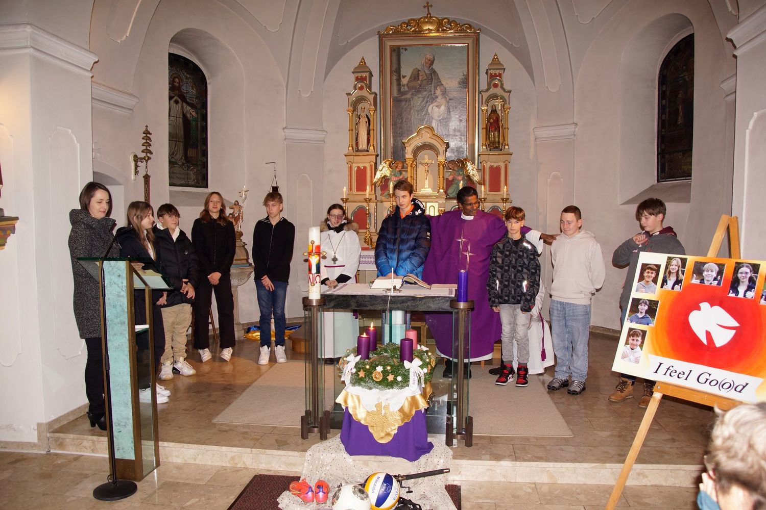 Unter dem Motto „I feel good. I feel Go(o)d.” haben sich am 4. Dezember 2022 die Firmkandidat*innen im Zuge der Messfeier der Pfarrgemeinde vorgestellt.