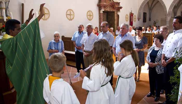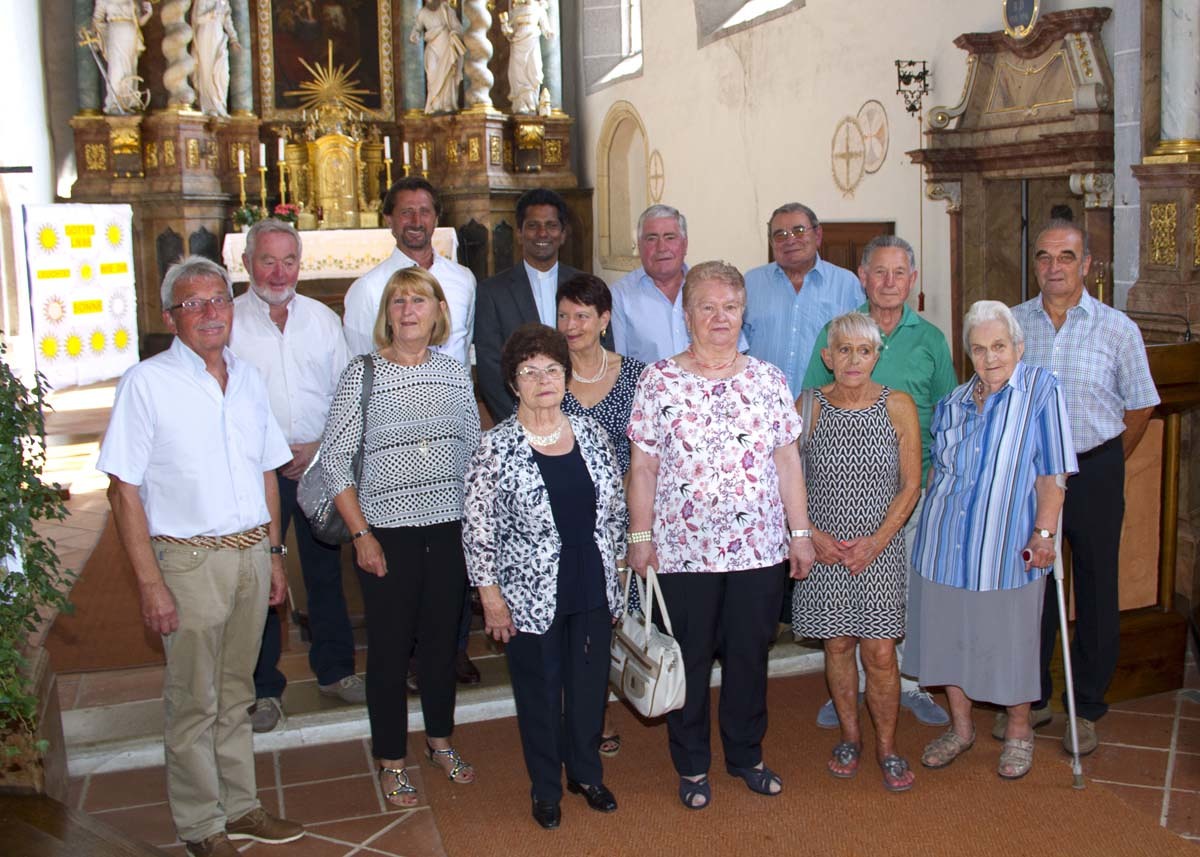 Bei strahlendem Sonnenschein feierten wir am Sonntag, dem 12. August unser Pfarrfest. Ehrengäste an diesem Tag waren alle, die in diesem Jahr ein Ehejubiläum oder einen runden Geburtstag vom 50er aufwärts feiern. Im Rahmen des festlichen Gottesdienstes wurden ihnen die herzlichsten Glückwünsche der Pfarrfamilie ausgesprochen und Pfarrer Sebastian segnete sie feierlich. Zu den Jubilaren gehört auch unsere Messnerin Maria Glösl die heuer ihren 80. Geburtstag feiert. Ihr gilt unser ganz besonderer Dank für ihren jahrzehntelangen unermüdlichen Einsatz für unsere Kirche und Pfarrgemeinde.