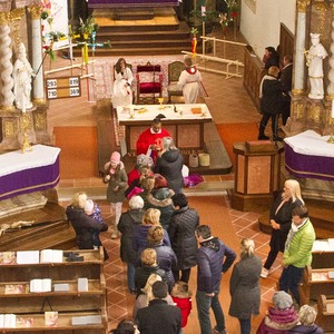 In jener Zeit ging Jesus nach Jerusalem hinauf. Als er in die Nähe von Betfage und Betanien kam, an den Berg, der Ölberg heißt, schickte er zwei seiner Jünger voraus und sagte: Geht in das Dorf, das vor uns liegt. Wenn ihr hineinkommt, werdet ihr dort einen jungen Esel angebunden finden, auf dem noch nie ein Mensch gesessen hat. Bindet ihn los, und bringt ihn her! Und wenn euch jemand fragt: Warum bindet ihr ihn los?, dann antwortet: Der Herr braucht ihn. Die beiden machten sich auf den Weg und fanden alles so, wie er es ihnen gesagt hatte. Als sie den jungen Esel losbanden, sagten die Leute, denen er gehörte: Warum bindet ihr den Esel los? Sie antworteten: Der Herr braucht ihn. Dann führten sie ihn zu Jesus, legten ihre Kleider auf das Tier und halfen Jesus hinauf. Während er dahinritt, breiteten die Jünger ihre Kleider auf der Straße aus. Als er an die Stelle kam, wo der Weg vom Ölberg hinabführt, begannen alle Jünger freudig und mit lauter Stimme Gott zu loben wegen all der Wundertaten, die sie erlebt hatten. Sie riefen: Gesegnet sei der König, der kommt im Namen des Herrn. Im Himmel Friede und Herrlichkeit in der Höhe! Da riefen ihm einige Pharisäer aus der Menge zu: Meister, bring deine Jünger zum Schweigen! Er erwiderte: Ich sage euch: Wenn sie schweigen, werden die Steine schreien.