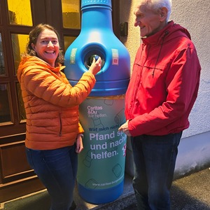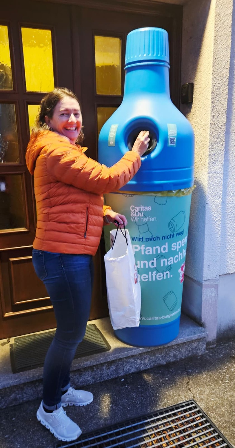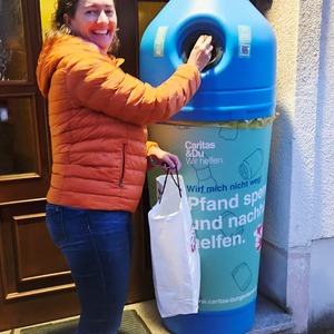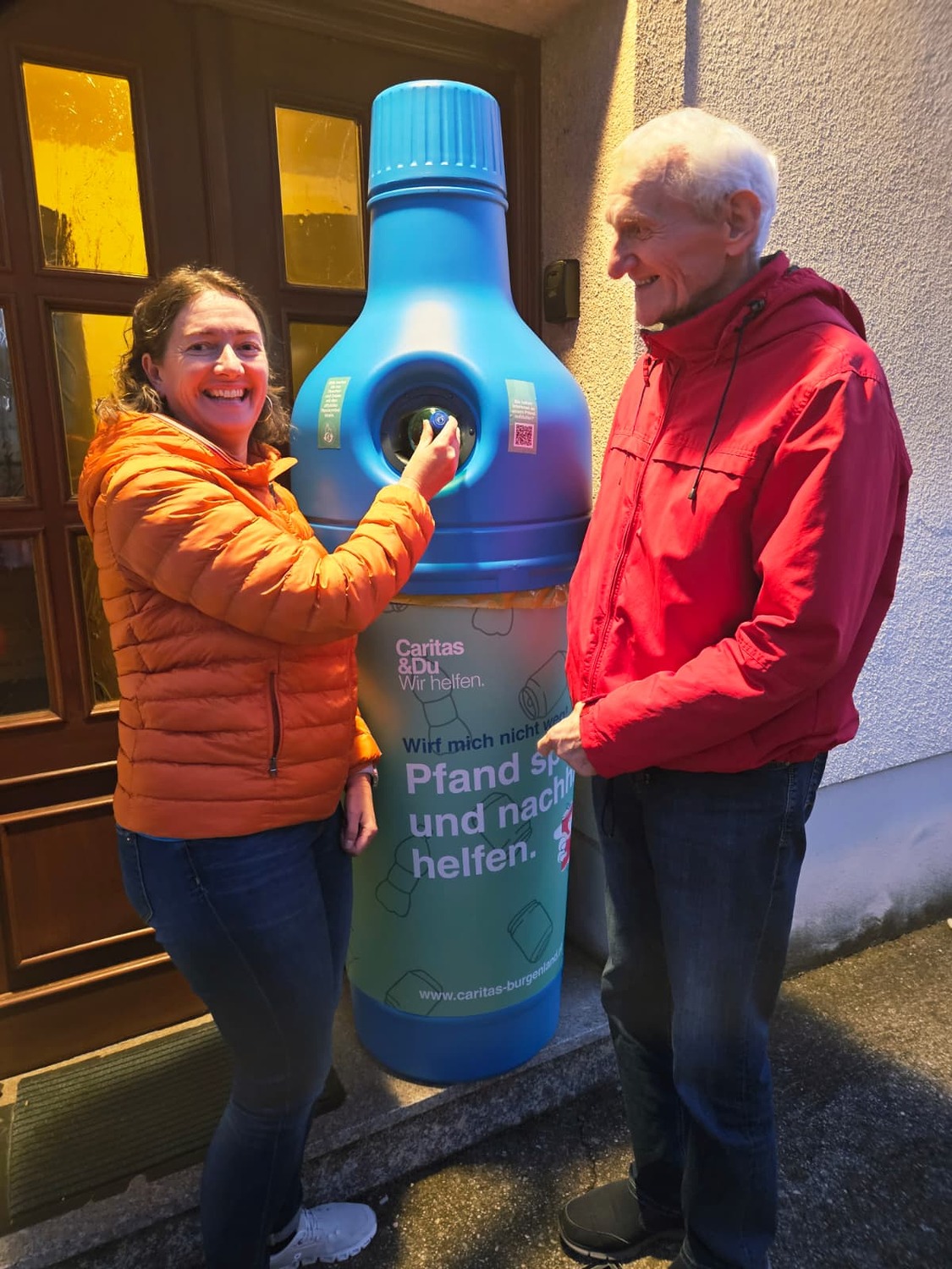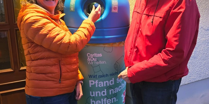 Seit November können beim Pfarrheim Josef Wessely Haus Pfandflaschen und -dosen zugunsten der Caritas gespendet werden. Der Sammelbehälter ist tagsüber aufgestellt: Vergelt's Gott für Ihre Spenden!