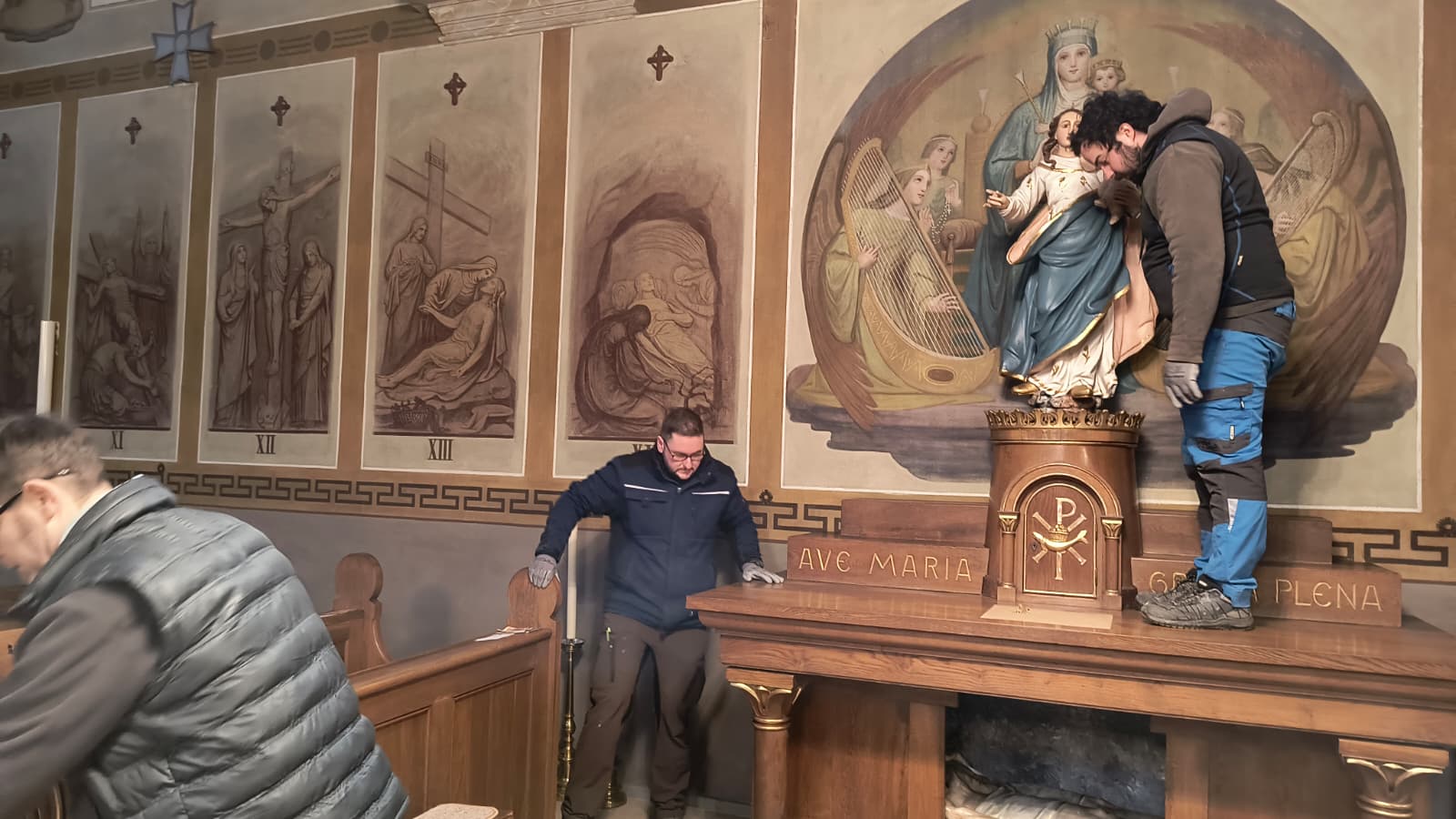 In diesen Wochen werden in unserer Pfarrkirche unter fachkundiger Aufsicht des Denkmalamts Arbeiten der Holzrestaurierung durchgeführt. Diese wurden zwar bereits vor zwei Jahren anberaumt, können aber erst jetzt durchgeführt werden. Nach vielen Jahren ist eine grundsätzliche Reinigung unseres wertvollen Holzinventars notwendig, dazu eine Auffrischung sowie die Beseitigung der Schäden, die durch den Holzwurm aufgetreten sind. Zu Ostern sollen alle Arbeiten abgeschlossen werden.