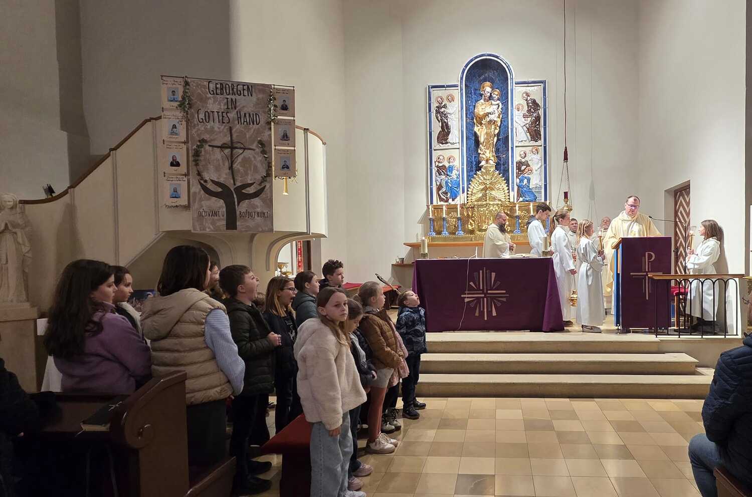 Am Hochfest des hl. Josef, dem 19. März 2026, feierte die Pfarre Güttenbach ihren Patron. Als Hauptzelebrant und Festprediger betonte Pfarrer Branko Kornfeind (Dürnbach) die Bedeutung des hl. Josef für die hl. Familie, für die ganze Kirche und für unsere Pfarre und unsere Familien. Der Chor HKDejci gestaltete den Festgottesdienst musikalisch, ebenso ein schwungvoller Chor der Kinder. P. Adalbert Gaspar (Unterwart) konzelbrierte mit unseren Priestern Marko Zadravec und Kurt Aufner bei der Festmesse, unterstützt von unseren Ministranten.