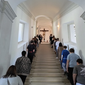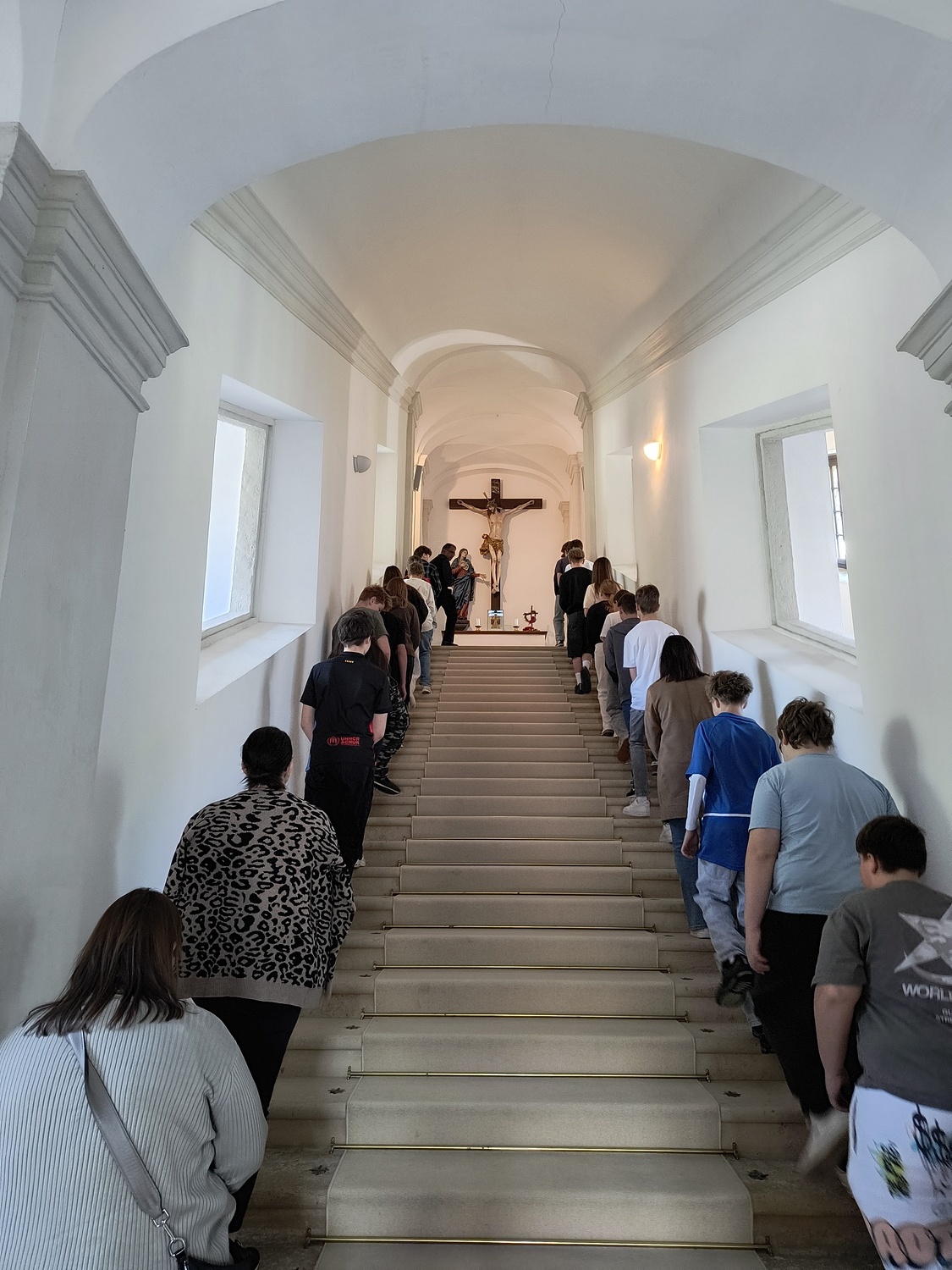Mit dem nachkommenden Ersatzbus wurde die Reise dann fortgesetzt und das Programm kurzfristig adaptiert. So beteten wir an der Heilige Stiege in der Pfarrkirche Forchtenstein eine Andacht zum Leiden Jesu und um den Heiligen Geist. Danach ging es wie geplant zum Mittagessen und in die Gemeinschaft Cenacolo in Kleinfrauenhaid. Das Zeugnis der jungen Männer war überaus eindrucksvoll!