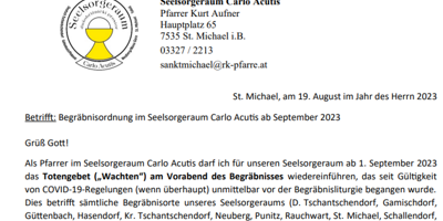 Herzliche EInladung zum Erntedankfest am 8. Oktober 2023, beginnend um 9 Uhr bei der Kapelle Bergstraße (Autohaus Matisovits) mit Segnung der Erntekrone, anschl. Prozession zur Festmesse in die...