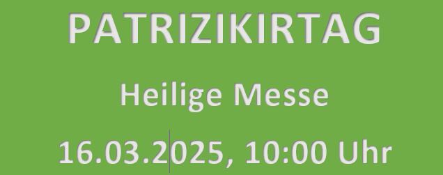 Am Sonntag, den 16. März findet der traditionelle Patrizikirtag statt. Dabei wird um 10:00 Uhr eine Heilige Messe gefeiert, in welcher dem Gedenken des Heiligen Patrizius gedacht wird.