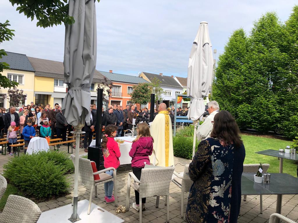 Am 18.05.2023 fand vor dem Kastell in Stegersbach die Festmesse anläßlich Christi Himmelfahrt statt, welche von Pfarrer Mag. Zdravko Gašparić gefeiert wurde. Die Gestaltung der Messe übernahm der Musikverein sowie die Volksschulkinder. Trotz der etwas kühlen Temperaturen nahmen viele Menschen an der Messe teil. Im Anschluß gab es in gewohnter Weise noch einen Frühschoppen durch den Musikverein Stegersbach.