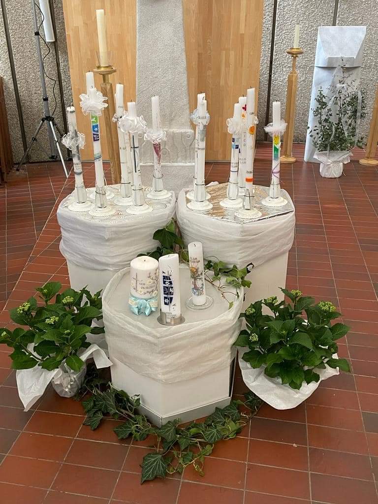 Am 30.04.2023 fand in der Heiligen-Geist-Kirche die feierliche Messe anlässlich der Erstkommunion statt. Dabei erhielten 17 Kinder durch Pfarrer Thorsten Carich das Sakrament der Erstkommunion.