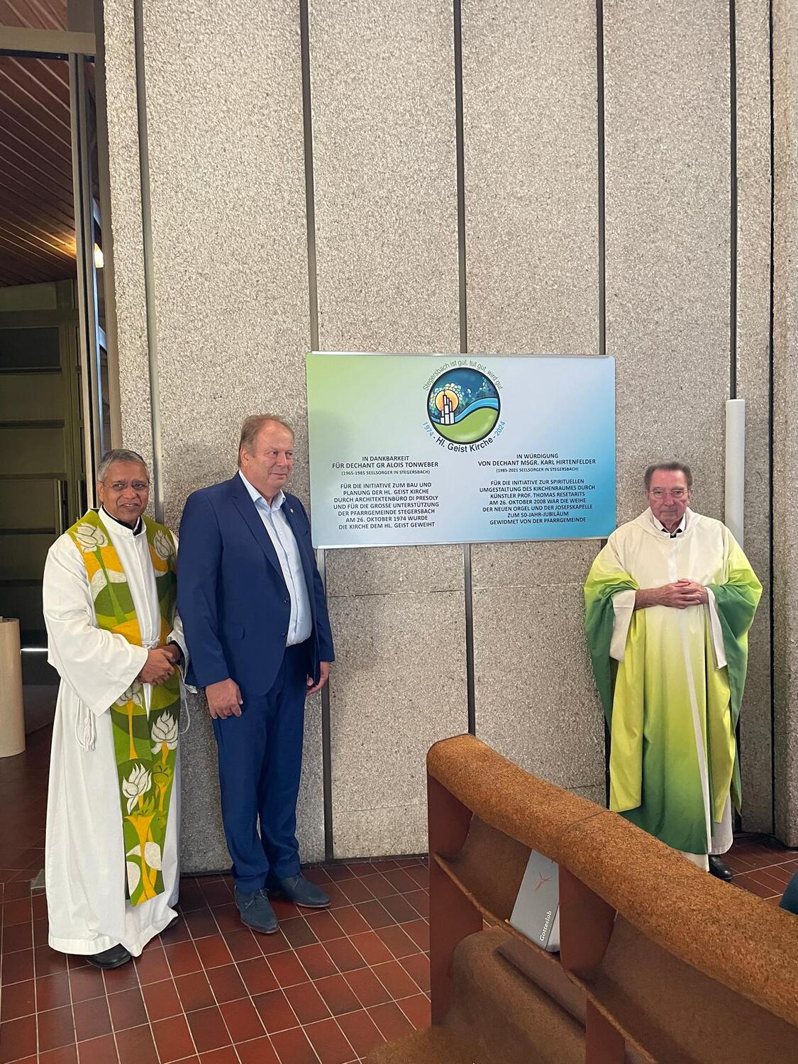 50 Jahre Hl. Geist Kirche - Enthüllung einer Gedenktafel für Dechant GR Alois Tonweber und Dechant Msgr. Karl Hirtenfelder, zwei Priester, die unsere Pfarre in den vergangenen Jahrzehnten maßgeblich geprägt haben.