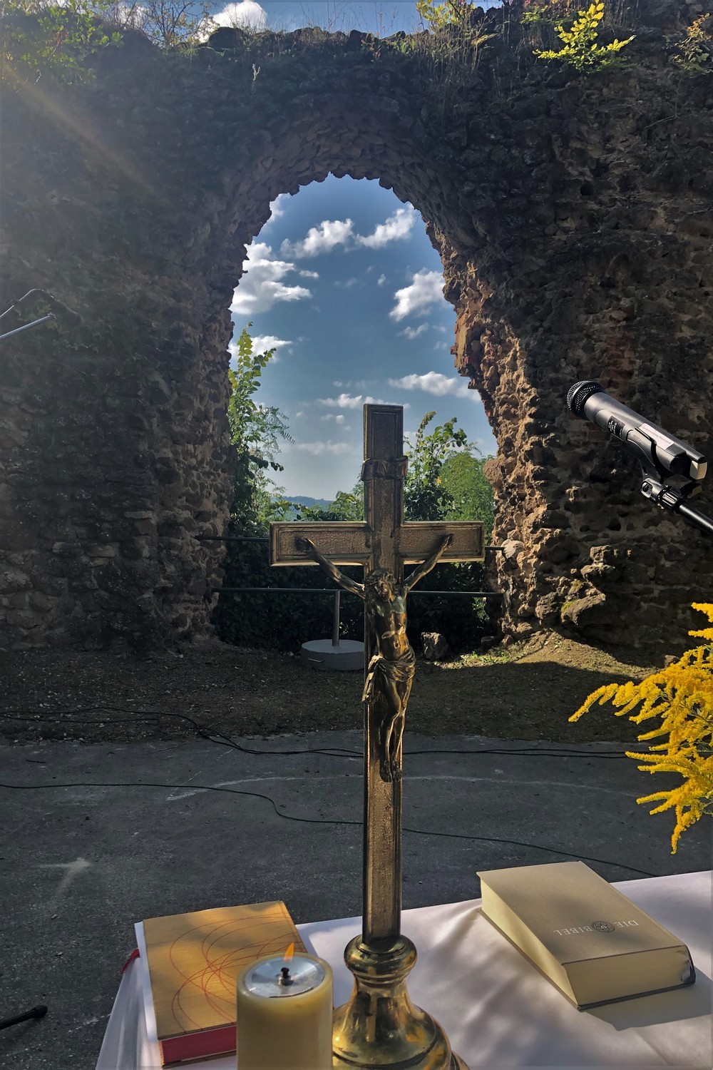 Dreiländerecktreffen am 05. September 2021 mit Ökumenischem Gottesdienst auf der Burgruine am Schlossberg.