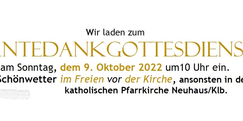 Einladung zum Erntedankfest am 9. Oktober 2022 / © Röm. -kath. Pfarre Neuhaus / Klb.