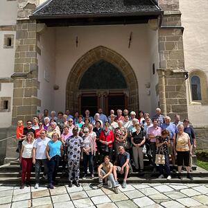 Bei Regen startete der diesjährige Pfarrausflug nach Ptuj, an dem 55 Personen des Pfarrverbandes teilnahmen. Die Reiseleitung wurde von Lidija Vindis-Roesler übernommen.