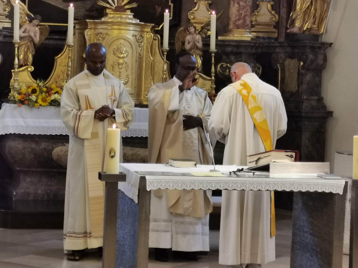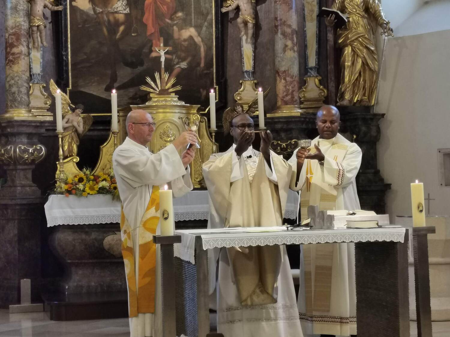 Anfang Ausgust feierte die Pfarrgemeinde gemeinsam mit Pfarrer Remigius Okafor unf Diakon Willi Brunner die Hl. Messe in der Pfarrkirche st. Martin/Raab zu Ehren 35 Jahre Priester Martin Ralph Kalu.