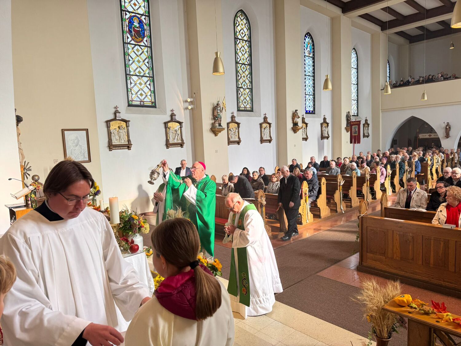 Am Sonntag dem 19. Oktober 2025 fand anlässlich der Eröffnung des neuen Seelsorgeraumes "Maria Weinberg-Unteres Pinkatal" eine gemeinsame Messe mit Diözesanbischof Mag. Dr. Ägidius Zsifkovics, Dechant Mag. Karl Schlögl und Kaplan Zoltan Csiki in Deutsch Schützen statt. Der neue Seelsorgeraum umfasst die Pfarren: Deutsch-Schützen, Sankt Kathrein, Bildein, Eberau, Gaas/Maria Weinberg und Moschendorf. Die Messe wurde vom Chor "Like a Rainbow" musikalisch begleitet. Im Anschluss an die heilige Messe wurden alle Mitfeiernden aus dem Seelsorgeraum zur Agape eingeladen.